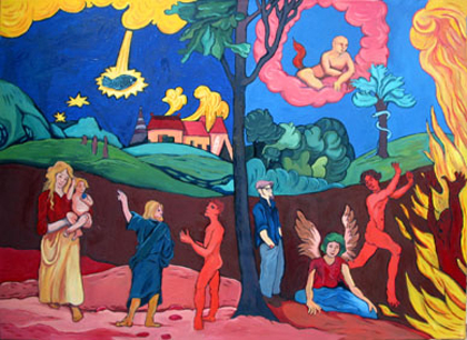 "Vom Sündenfall zum Jüngsten Gericht " frei nach einem Holzschnitt von L. Cranach dem Älteren Öl auf Leinwand, 130x180, 2004