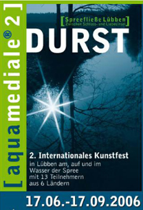 Juni 2006 Im Juni 2006 wurde ich um einen Beitrag für ein internationales Kunstereignis, die zweitmalig stattfindende Aquamediale in Lübben gebeten. Für das Ereignis von Juni bis September entwarf ich Skulpturen zum Thema „Durst“, welche die Evolution rückwärts symbolisieren sollten. Mit einem Materialbudget von 1000 Euro entstanden innerhalb von 2 Wochen 7 dreimeterlange fischähnliche Kreaturen mit Landschaften im Bauch, die über Solarlicht nachts beleuchtet und fliegend und kriechend zum Wasser getragen wurden. Die reliefartigen Landschaften im Inneren entsprachen den trockengelegten zerstörten Tagebaugebieten der Lausitz.